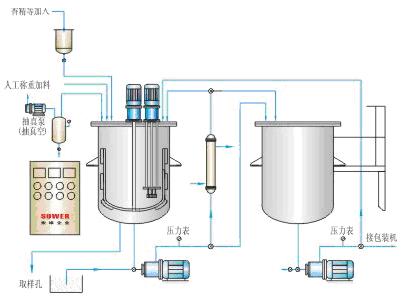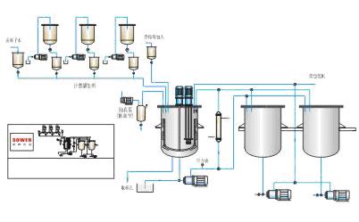 1. hopper 2. manually feeding 3.:Vacuum-suction pump. 4.sampler 5. High shear emulsifying machine 6.pressure pumps 7. Packing machine