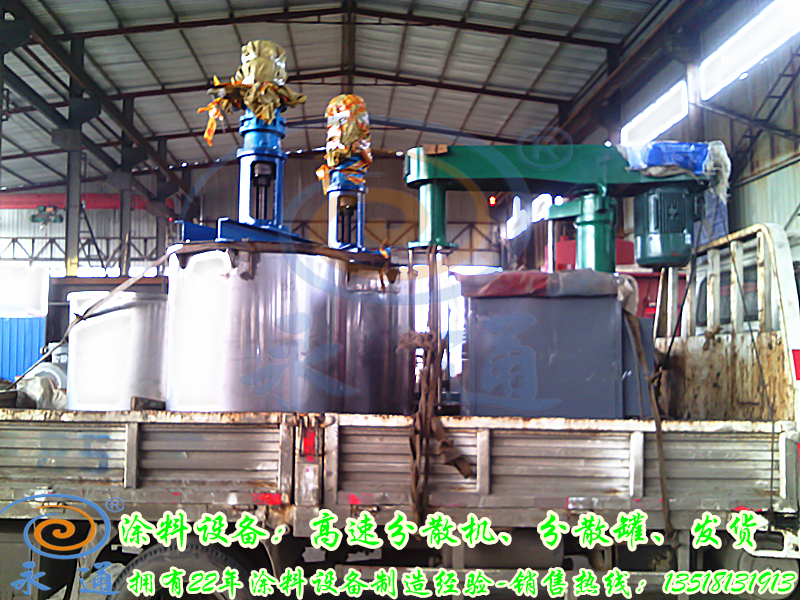 内江一客户订购的高速分散机于2015年3月24日发货,包括2台高速分散罐,一个搅拌 缸,一台实验室分散机。此设备主要用于涂料的生产,可生产乳胶漆、水性涂料、油性等涂料,具有效率高分散效果好等优点。