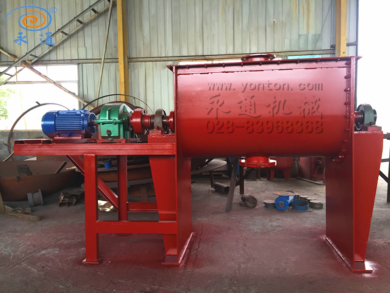 2017年1月重庆客户在我公司定制的卧式混合机已制作完成,此混合机主要用于干粉物料如:建筑砂浆、食品、面粉、铁红、建材、化工等干粉物料是混合搅拌,此设备为U型容积2500L,为满足客户需求传动部位采用齿轮变速箱,配置22KW电机,设备材质碳钢,设备已制作完成等待客户提货。