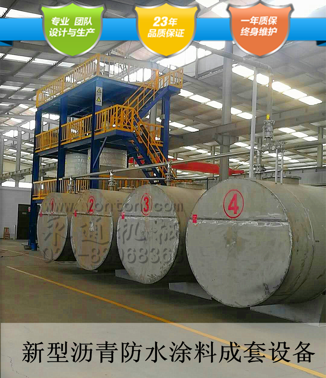 新型沥青防水涂料设备主要用于建筑、涂料、行业,具有自动化生产程度高、设备稳定、生产能力高等优点、是生产新型沥青防水涂料的专用设备,此设备由我公司2016年自主研发,2016年在成都、雅安、客户率先安装2套投产使用,由于设备效果好,市场需求多,在2017年河北、安徽、北京、等客户定制的3套于2017年6月已经安装完成投入使用,由于项目好,吸引了一大批客户考察,以前的常规防水涂料已经不能达到现在的防水涂料标准,企业为此转型-为满足市场需求在2017年11月河北、安徽、北京客户与我公司又签订5套此设备。