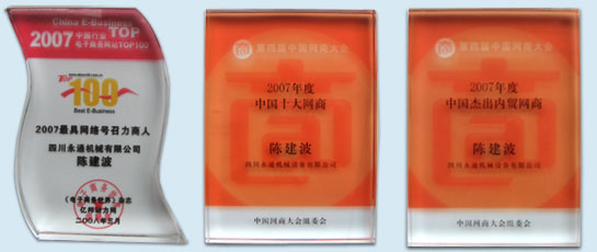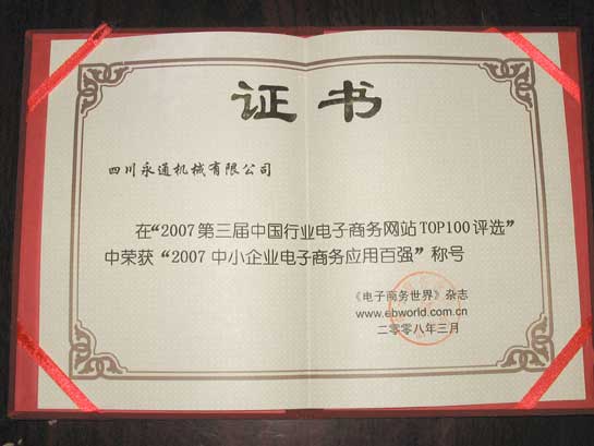 3月24-25日在杭州举行的,由《电子商务世界》杂志和亿邦动力网主办的第三届中小企业电子商务应用发展大会上公布了2007年度中国中小企业电子商务应用百强榜单。四川IM官方版 机械设备有限公司因多年的电子商务应用和具有清晰的企业发展战略级的网络营销规划,并已取得显著实效,入选此100强。同时,IM官方版 陈建波总经理获得“2007 Z具网络号召力商人”荣誉,这是继取得“2007年度中国十大网商”“2007年度中国杰出内贸网商”之后的又一殊荣。