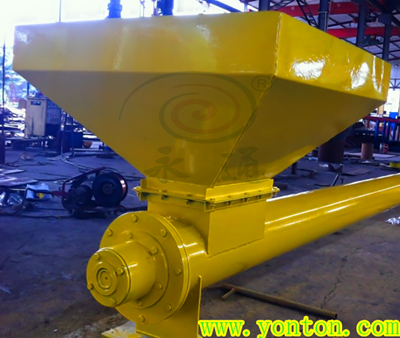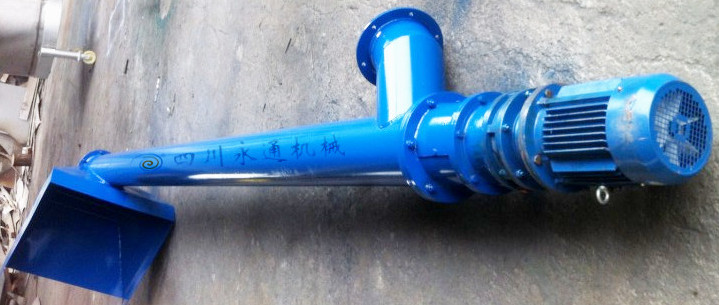 当物料进入螺旋输送机固定的机壳内时,由于物料的重力及对机壳的摩擦力作用而不随螺旋体一起转动,物料只在旋转的螺旋叶片推动下向前移动。其构造包括半圆形的固定机壳、由驱动装置驱动的螺旋体及进、出口等构件。普通螺旋输送机适宜输送粉状和粒状、小块状物料,如水泥、化肥、煤粉、纯碱、谷物、面粉、饲料等;不适宜输送长纤维状、坚硬大块的或黏性大的物料,因为输送这些物料,易产生卡死或堵塞设备的事故。普通螺旋输送机输送长度一般不大于70m,输送物料湿度应小于200℃,安装倾角不大于20。。普通螺旋输送机的特点是:结构简单、工作可靠、维修方便、成本较低、密封较好,并可多点进料和多点卸料,但由于物料对螺旋体及机壳的摩擦和螺旋体对物料的搅拌,运行阻力较大,消耗较高。