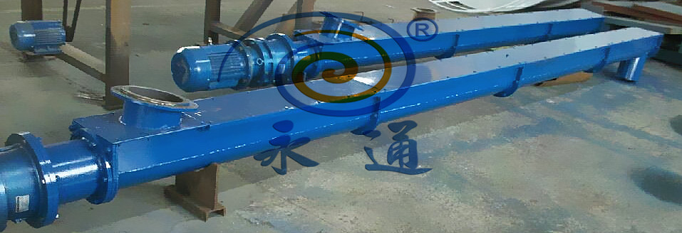 水平螺旋输送机的料槽通常用2~4mm厚的薄钢板制成。横断面两侧壁垂直,底部为45度锥形,料槽的端部和侧壁上端均用角钢加固,以保证料槽的刚度,实现节与节间、顶部盖板与料槽的连接,料槽底部应设置铸铁件或角钢焊接件的支承脚。底部半圆的内径应比螺旋叶片直径大4~8mm,垂直快速螺旋输送机料槽横断面为圆形,通常采用薄壁无缝钢管制成。
