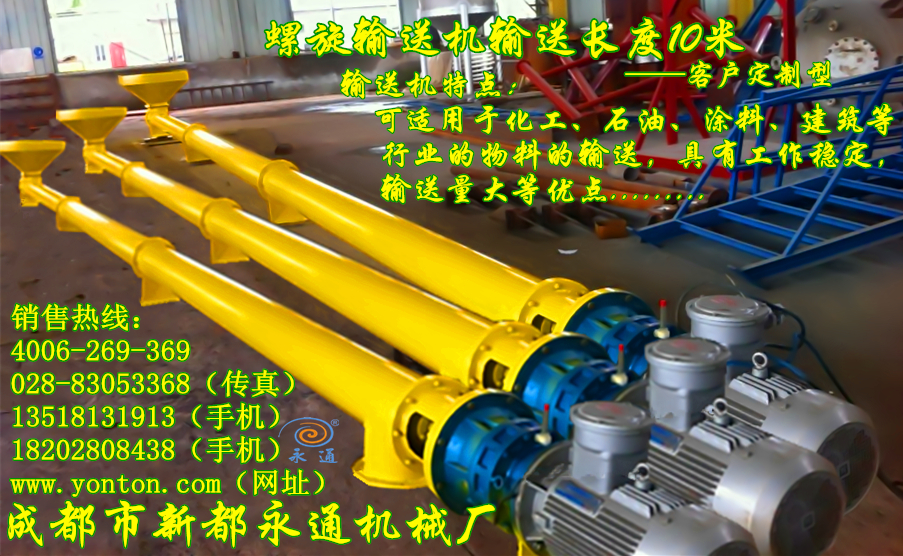 螺旋输送机适用范围螺旋输送机是化工、建材、矿山、粮食企业中用途广泛的一种输送设备,主要用于输送粉状、颗粒状和小块状物料,适用物料温度小于200℃ 条件下工作。输送长度不超过70米 ,可水平和倾斜输送。
