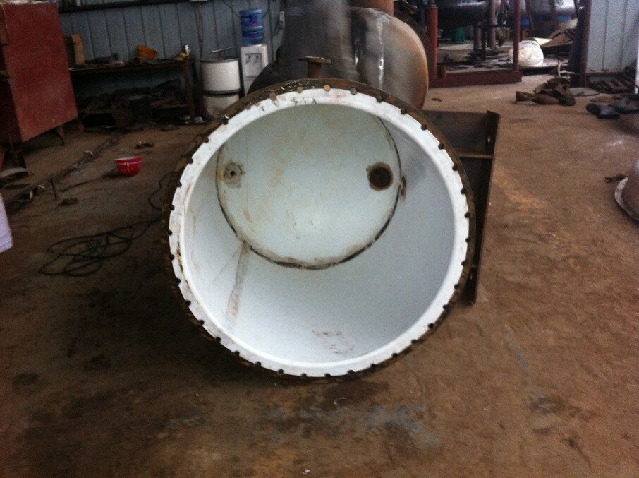 这批反应釜的制造的难点体现在封头上支口较多,对于这些支口我们将采用模压成型法进行制造,然后将它焊接于四氟封头上。对于反应釜的筒体部分我们依然会采用整体粘接的方法,采用该方法制造的反应釜焊缝少,内部光滑美观。