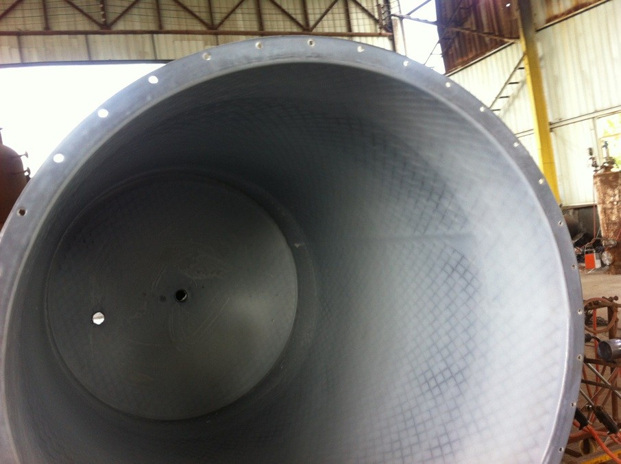 2013年8月1日我公司新出炉2台钢衬塑储罐罐,本次储罐罐采用的是龟甲衬里热塑一次成型工艺,衬里材料采用的是改性聚烯烃SPO,该塑料防腐能力强热性能好,绝缘性能优异是较佳的防腐材料,用此材料制作钢衬PO储罐能耐碱性环境和一定温度与浓度范围内的非氧化性酸。