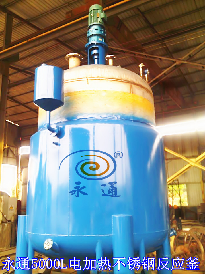 四川某客户定制的5000升不锈钢电加热反应釜制造完成,加热功率96千瓦,搅拌电机功率11千瓦。