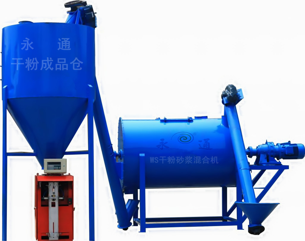 卧式螺带混合机是干粉砂浆生产的主机,其质量的好坏可直接影响产品的质量。卧式螺带混合机与2根进出料螺旋输送机、一台成品仓及一台自动包装机就组成了一套小型干粉砂浆生产线,这是我厂特地为初次投资干粉砂浆生产的客户所设计的。此套生产线投资小,又有升级为中大型干粉砂浆生产线的空间,对入门者适用。