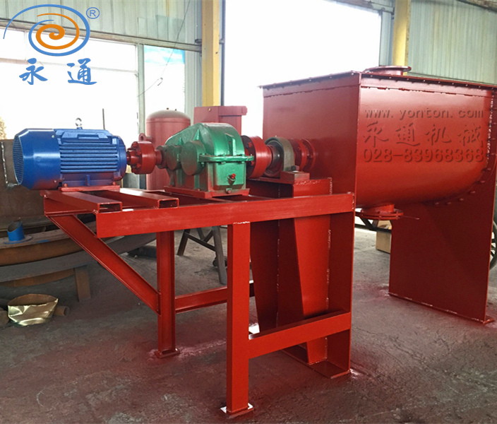 2017年1月重庆客户在我公司定制的卧式混合机已制作完成,此混合机主要用于干粉物料如:建筑砂浆、食品、面粉、铁红、建材、化工等干粉物料是混合搅拌,此设备为U型容积2500L,为满足客户需求传动部位采用齿轮变速箱,配置22KW电机,设备材质碳钢,设备已制作完成等待客户提货。
