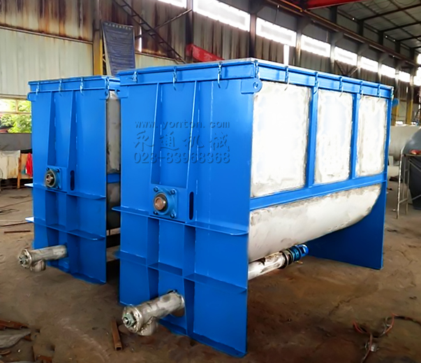 下面图片是为客户定制生产的卧式螺带混合机:容积16立方