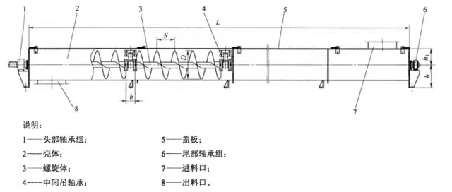 螺旋在运行时,中间轴承能有效阻止螺旋因自重而引起的下坠变形,使输送机的能耗增加而影响输送效率。