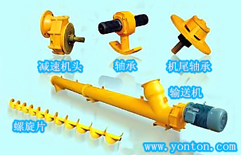 当物料进入螺旋输送机固定的机壳内时,由于物料的重力及对机壳的摩擦力作用而不随螺旋体一起转动,物料只在旋转的螺旋叶片推动下向前移动。其构造包括半圆形的固定机壳、由驱动装置驱动的螺旋体及进、出口等构件。普通螺旋输送机适宜输送粉状和粒状、小块状物料,如水泥、化肥、煤粉、纯碱、谷物、面粉、饲料等;不适宜输送长纤维状、坚硬大块的或黏性大的物料,因为输送这些物料,易产生卡死或堵塞设备的事故。普通螺旋输送机输送长度一般不大于70m,输送物料湿度应小于200℃,安装倾角不大于20。。普通螺旋输送机的特点是:结构简单、工作可靠、维修方便、成本较低、密封较好,并可多点进料和多点卸料,但由于物料对螺旋体及机壳的摩擦和螺旋体对物料的搅拌,运行阻力较大,消耗较高。