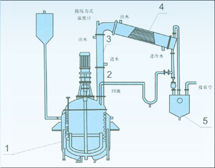 1酯化反应釜 2竖式分馏柱 3竖式冷凝器 4卧式冷凝器 5贮水器