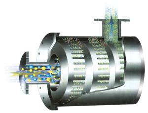| 工作腔内从进料口到出料口依次有三组定、转子,物料进入后须经三组定、转子分散剪切后才能从出料口输出。 | |